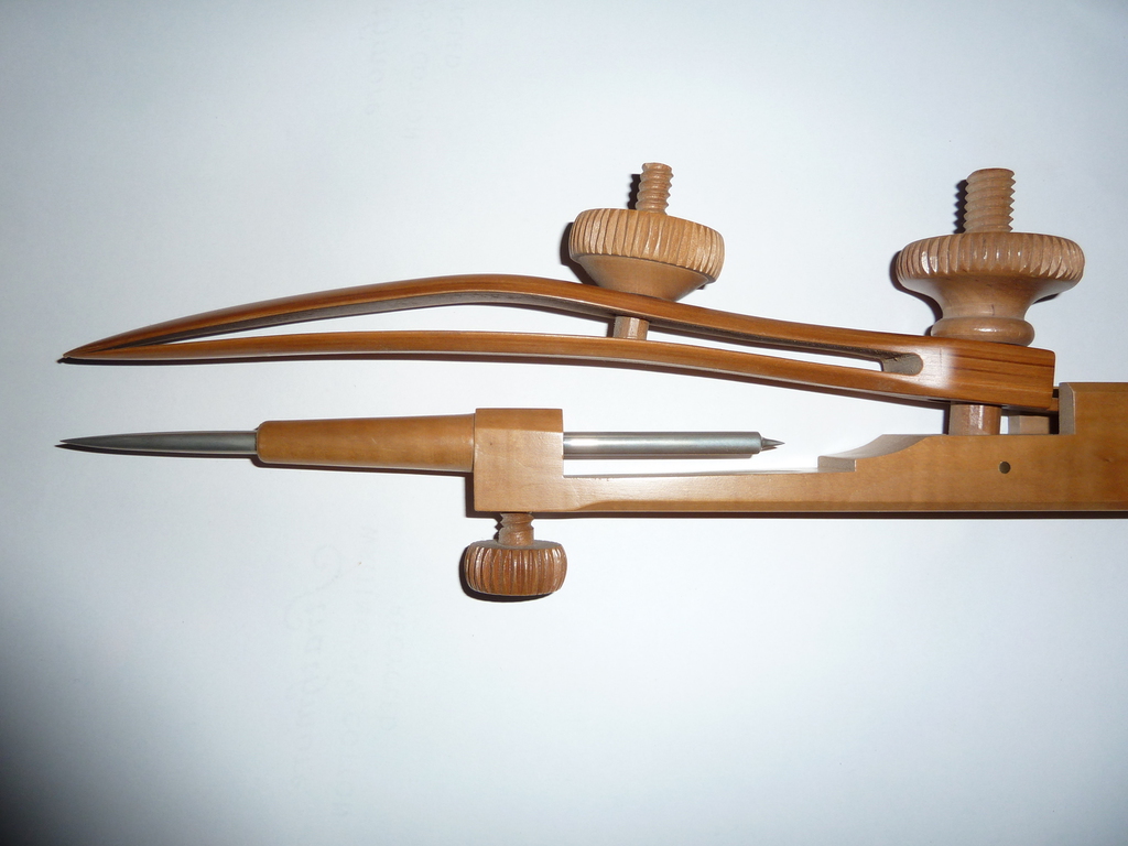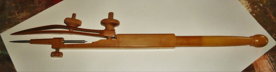 Geodätischer Zirkel, Kirschbaum massiv, Messing-Fixierungen, L - 70 cm